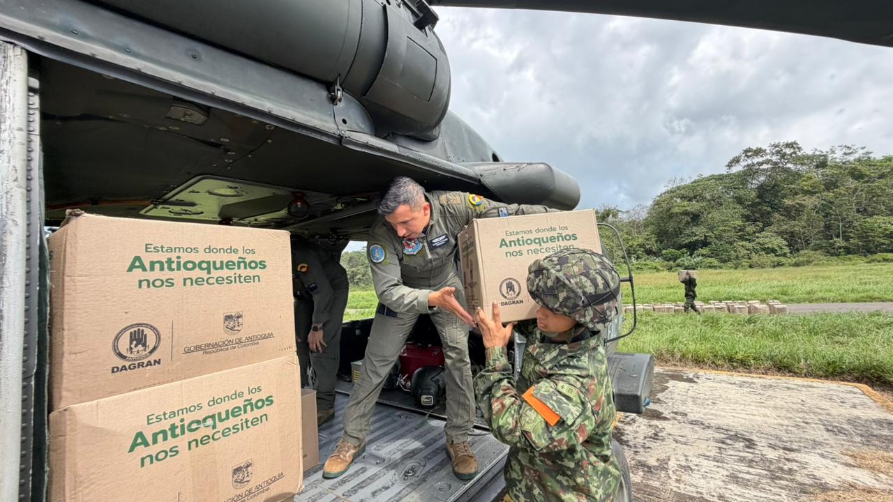 La misión se realizó de manera articulada con la Unidad Nacional para la Gestión del Riesgo de Desastres (UNGRD), el Departamento Administrativo de Gestión del Riesgo de Antioquia (DAGRAN), la Gobernación de Antioquia y el Centro Nacional de Recuperación de Personal (CNRP), como respuesta a la emergencia generada por el desbordamiento de fuentes hídricas y las afectaciones ocasionadas a decenas de familias.