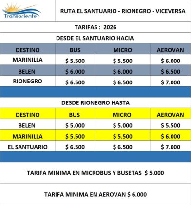 Con este panorama, el transporte público en el Oriente antioqueño inicia 2026 con nuevas tarifas en varias rutas, mientras otras empresas continúan evaluando sus costos operativos y los ajustes que podrían aplicarse en los próximos meses.