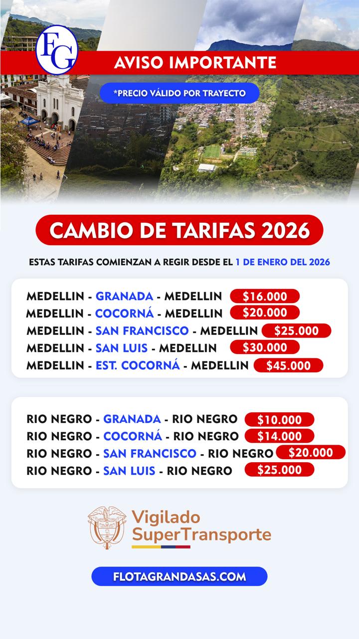 Desde el 1 de enero de 2026 comenzó a regir un nuevo ajuste en las tarifas del transporte público en varios corredores del Oriente antioqueño, como resultado de la actualización de la estructura de costos del sector, impactada principalmente por el aumento del salario mínimo decretado para este año.