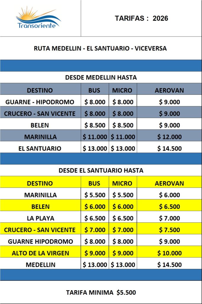 Desde el 1 de enero de 2026 comenzó a regir un nuevo ajuste en las tarifas del transporte público en varios corredores del Oriente antioqueño, como resultado de la actualización de la estructura de costos del sector, impactada principalmente por el aumento del salario mínimo decretado para este año.
