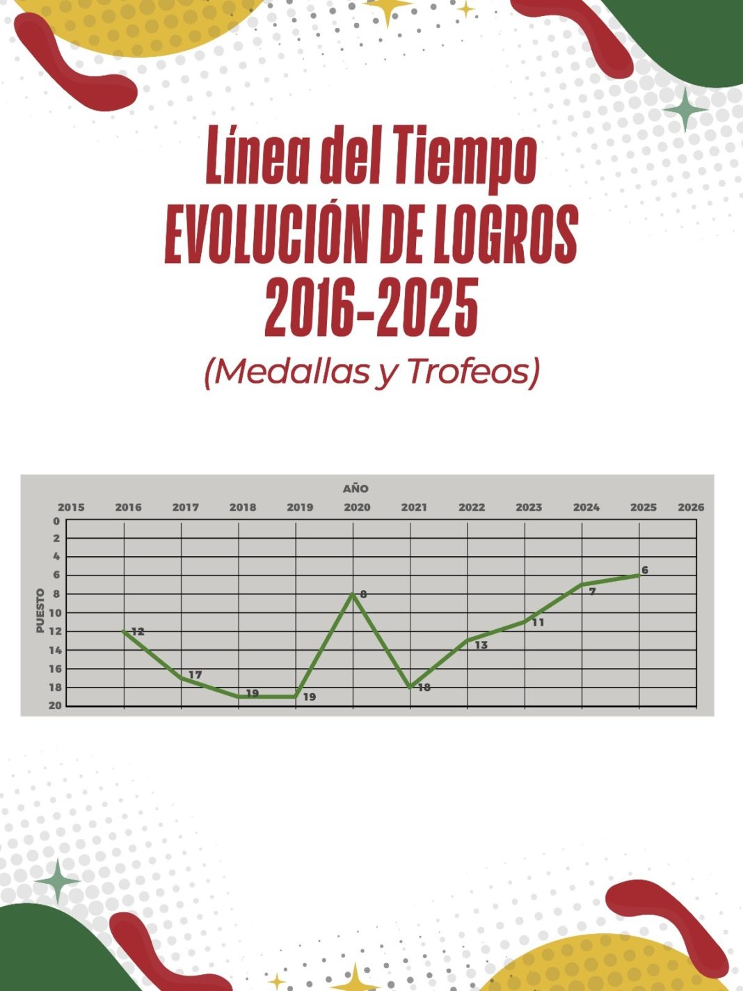 Este avance también se ve reflejado en la posición dentro de la tabla general departamental. De ocupar puestos intermedios en años anteriores, el municipio escaló progresivamente hasta ingresar al grupo de los diez mejores y consolidarse en el sexto lugar en 2025, compitiendo de tú a tú con delegaciones históricamente fuertes del departamento.
