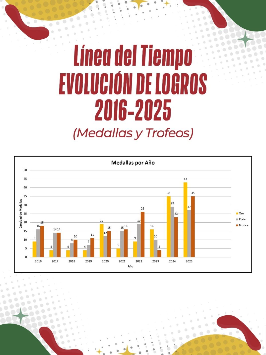 Otro aspecto clave del balance es el fortalecimiento del nivel y la constancia competitiva. La medallería anual muestra no solo un aumento en cantidad, sino una mayor diversidad de disciplinas aportando resultados, lo que evidencia la consolidación de programas deportivos, la detección de talento local y la madurez de los procesos formativos.