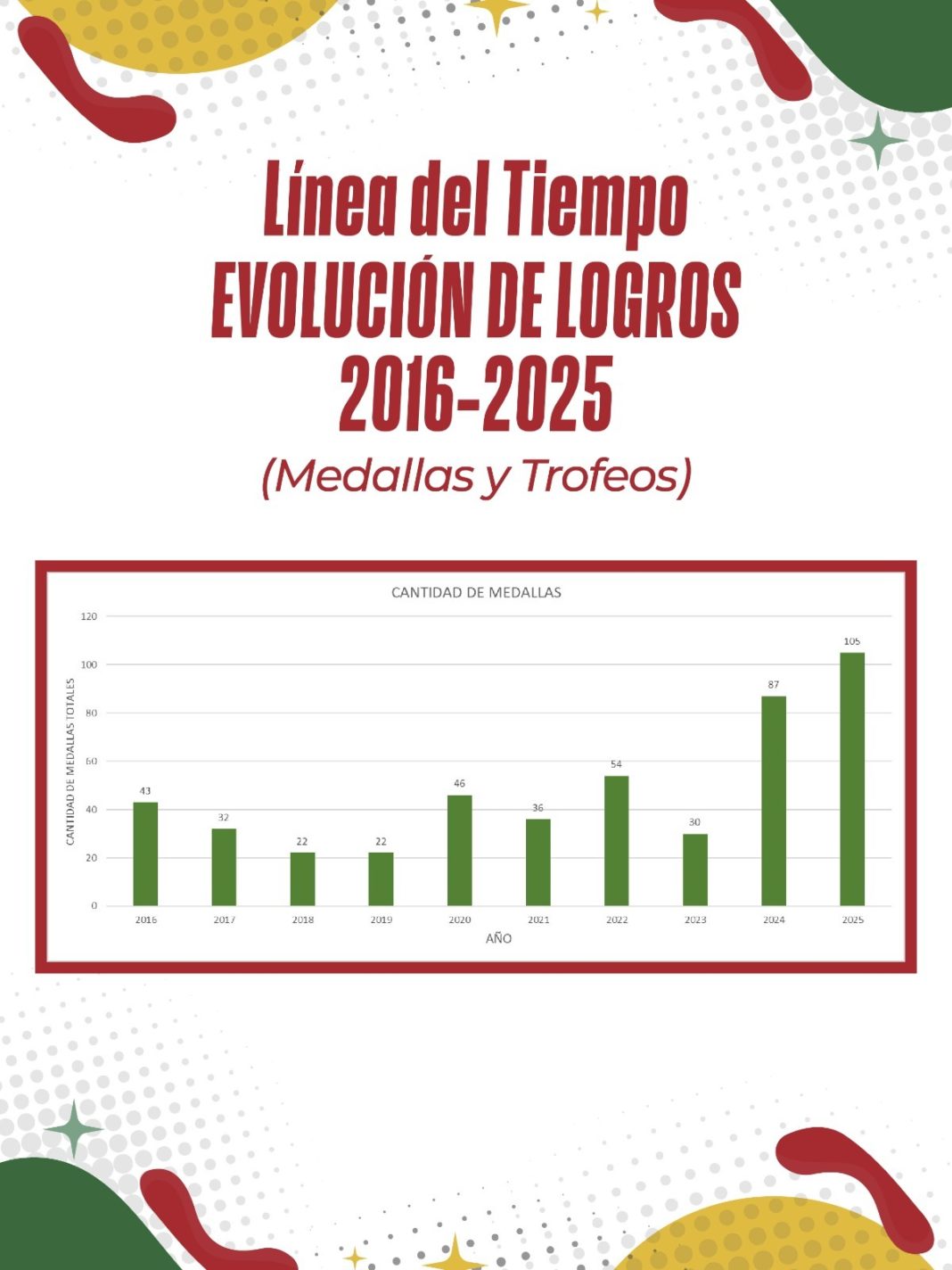 Uno de los indicadores más relevantes es el incremento sostenido en el número de medallas. En 2016, Guarne obtuvo 43 preseas y, aunque en los años siguientes se registraron algunas fluctuaciones, la tendencia general fue ascendente. A partir de 2020 el crecimiento se acentuó, alcanzando 87 medallas en 2024 y superando ese registro en 2025, lo que refleja una mayor participación de deportistas, mejor preparación técnica y fortalecimiento institucional.