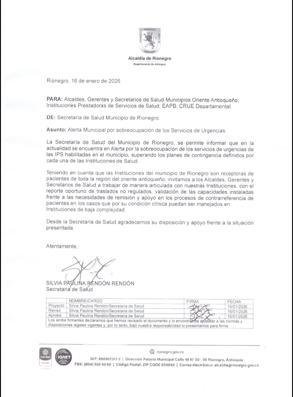 De acuerdo con la Administración Municipal, esta situación compromete la capacidad de respuesta del sistema de salud local, especialmente frente a los traslados no regulados provenientes de otros municipios del Oriente antioqueño. Rionegro continúa siendo el principal receptor de pacientes de la subregión, lo que incrementa la presión sobre la red hospitalaria.