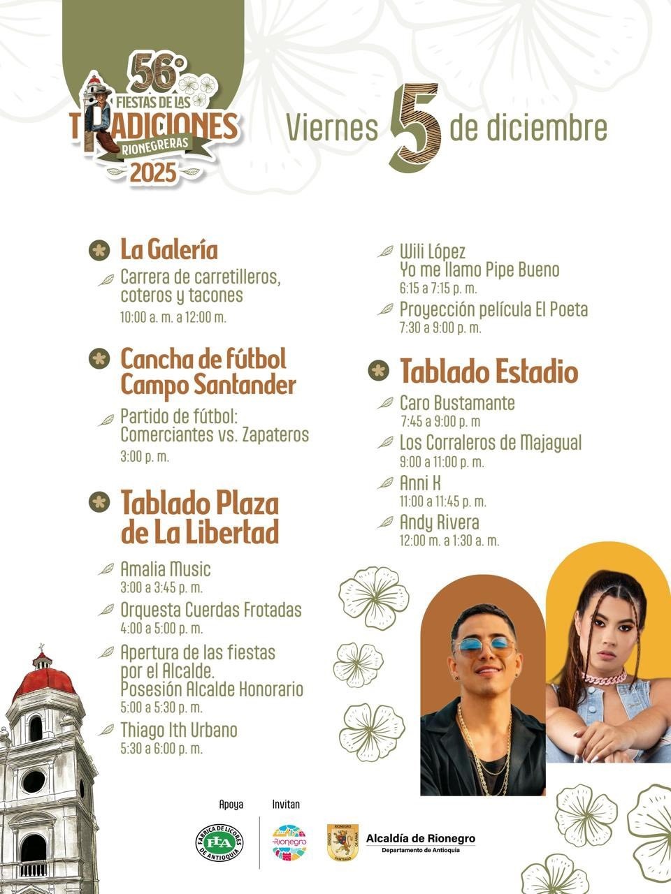 La Alcaldía de Rionegro invita a la ciudadanía y a los visitantes a disfrutar de estas fiestas con responsabilidad, sentido de pertenencia y entusiasmo, participando de una programación que celebra la tradición y fortalece la identidad del territorio.