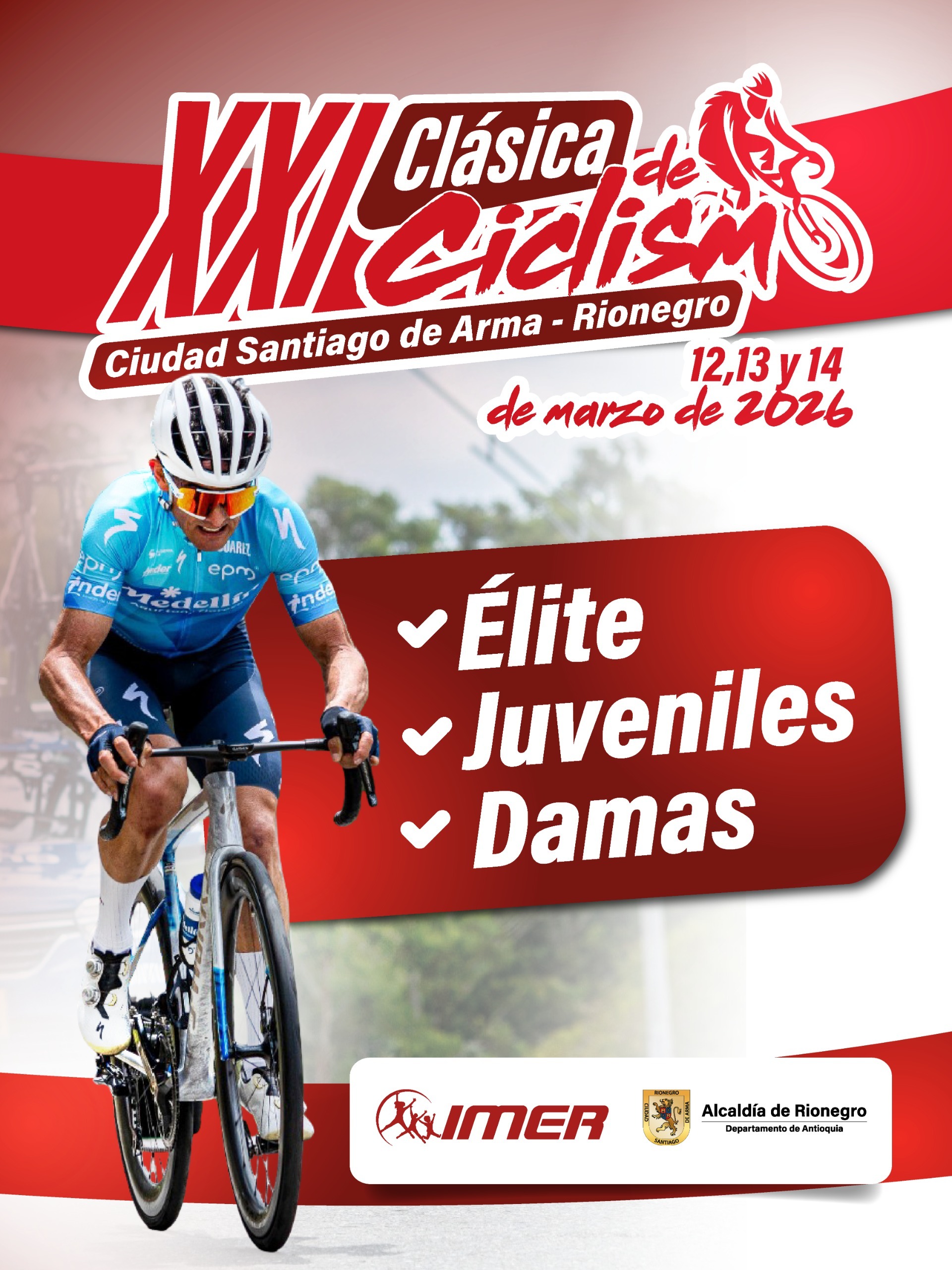 La adrenalina del pedal vuelve a las calles de Rionegro. El IMER Rionegro anunció oficialmente la realización de la XXI Clásica de Ciclismo Ciudad Santiago de Arma, un evento que se aleja de las rutas tradicionales de montaña para desafiar a los mejores ciclistas del país en circuitos urbanos altamente técnicos. Esta competencia, que se llevará a cabo entre el 12 y el 14 de marzo de 2026, se ha consolidado como un “laboratorio de habilidades” donde la estrategia, la ubicación en el pelotón y la explosividad son más determinantes que la simple fuerza bruta.